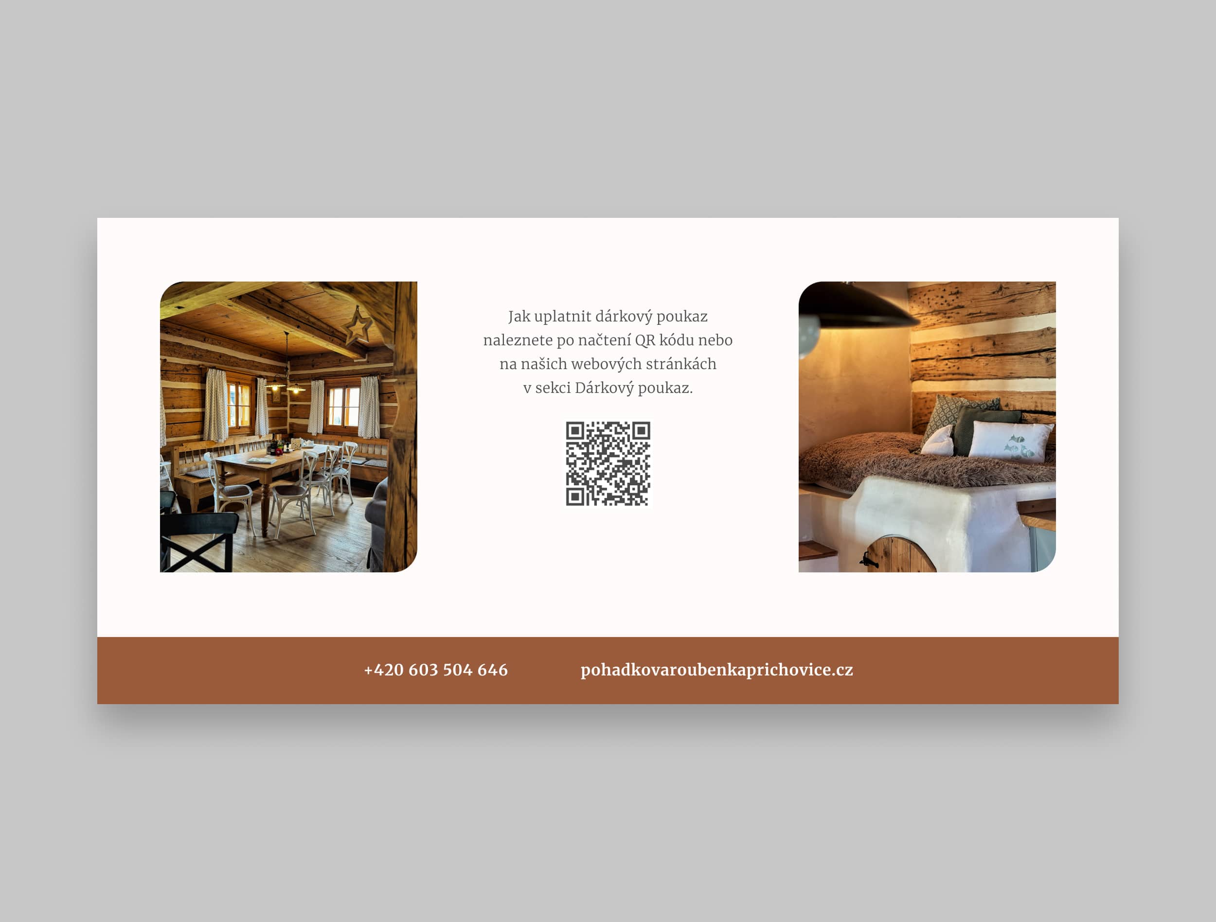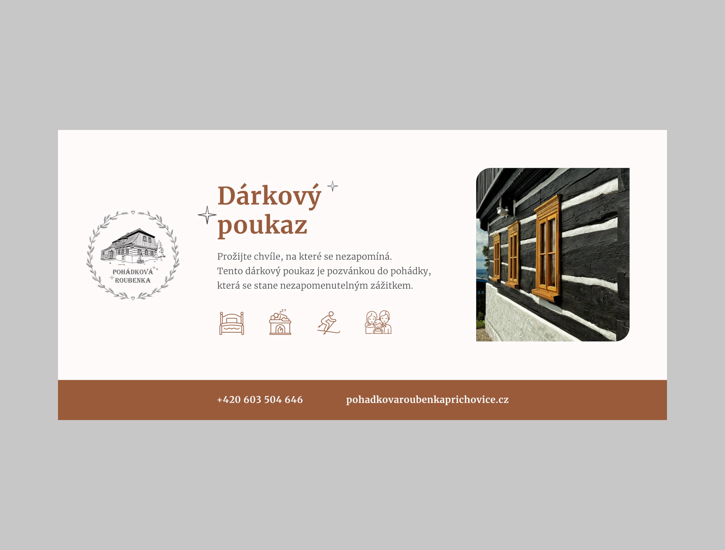 - Dárkový poukaz nabízíme v elektronické podobě (PDF zasílané e-mailem) nebo v tištěné podobě (zaslání poštou na uvedenou adresu, případně osobní vyzvednutí v roubence).