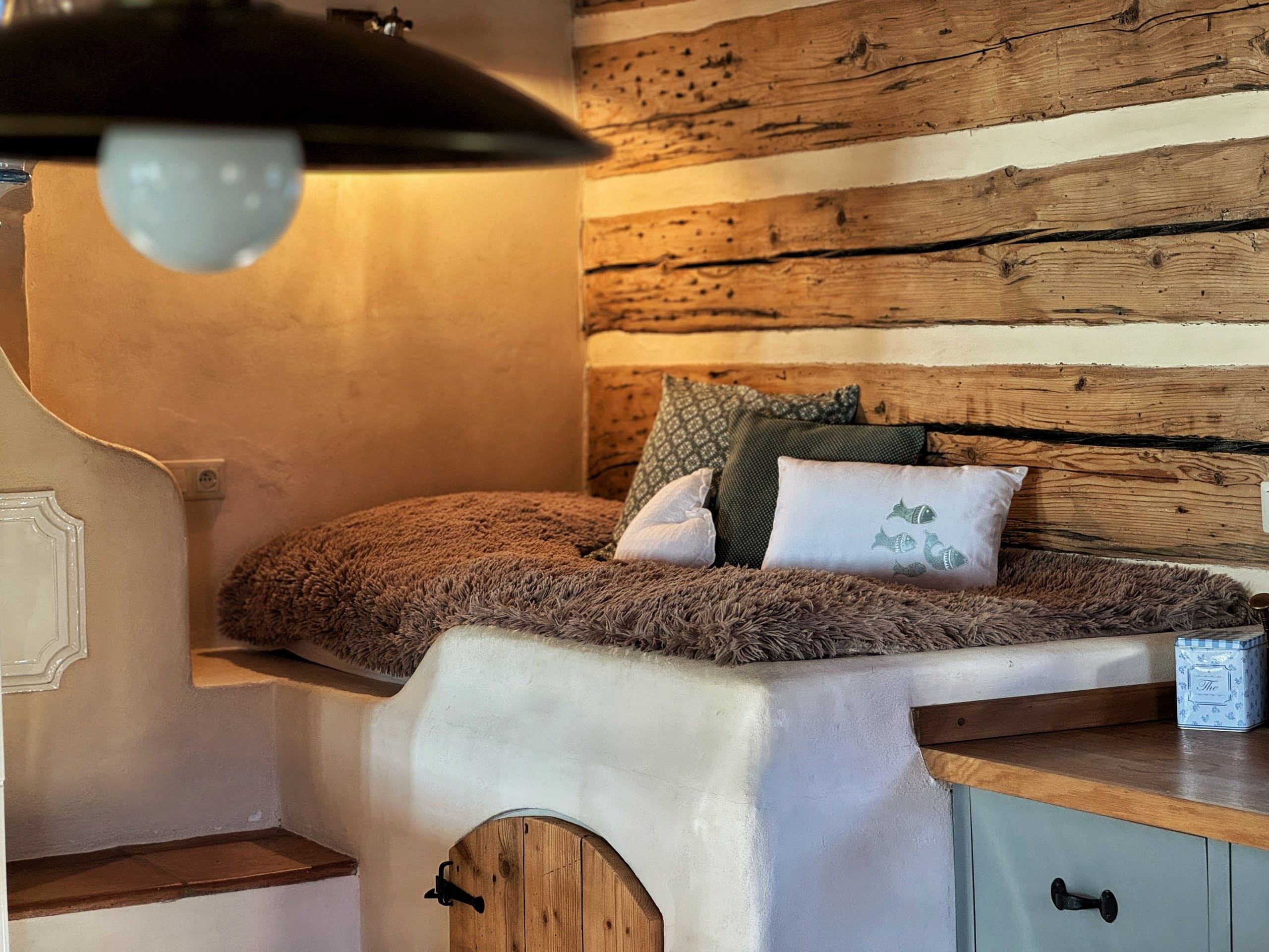 K dispozici máte mikrovlnnou troubu, indukční desku, klasickou troubu, rychlovarnou konvici, kávovar na kapsle, lednici, mrazák i dostatek nádobí, příborů a kompletní vybavení na vaření. Nechybí ani drobnosti jako tablety do myčky, kapsle do kávovaru, čaje, cukr nebo med. V chladnějších dnech si můžete v kuchyni zatopit v kamnech a užít si tak příjemnou atmosféru jako za starých časů.