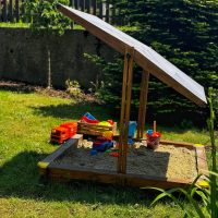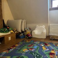 Na děti jsme v roubence mysleli do posledního detailu. V prvním patře je připravený dětský koutek plný hraček. Pro nejmenší hosty máme připravenou také dětskou postýlku. V kuchyni najdete dětskou židličku a u televize omalovánky, pastelky i knížky. V koupelnách je k dispozici vanička, stupátko, nočník a sedátko na WC. Venku na zahradě čeká pískoviště a nechybí ani dětské nádobí. A jako malou pozornost pro radost dětí máme připravené i dětské ručníky.